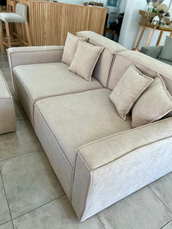 Este modelo cuenta con almohadones internos de 14 cm de alto de goma soft de alta densidad , en el respaldo los almohadones internos son de 10 cm de alto, también goma soft de alta densidad.